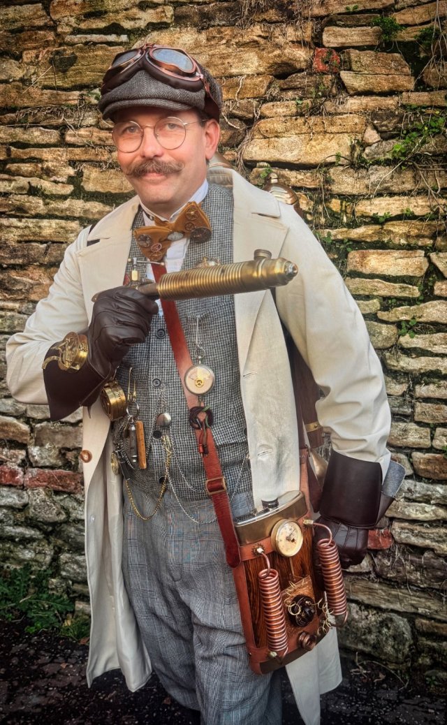 Below and left (or further down the page if using a phone) can be seen some examples of what might be considered modern steampunk outfits (to various degrees of modernity) seen in 2025.